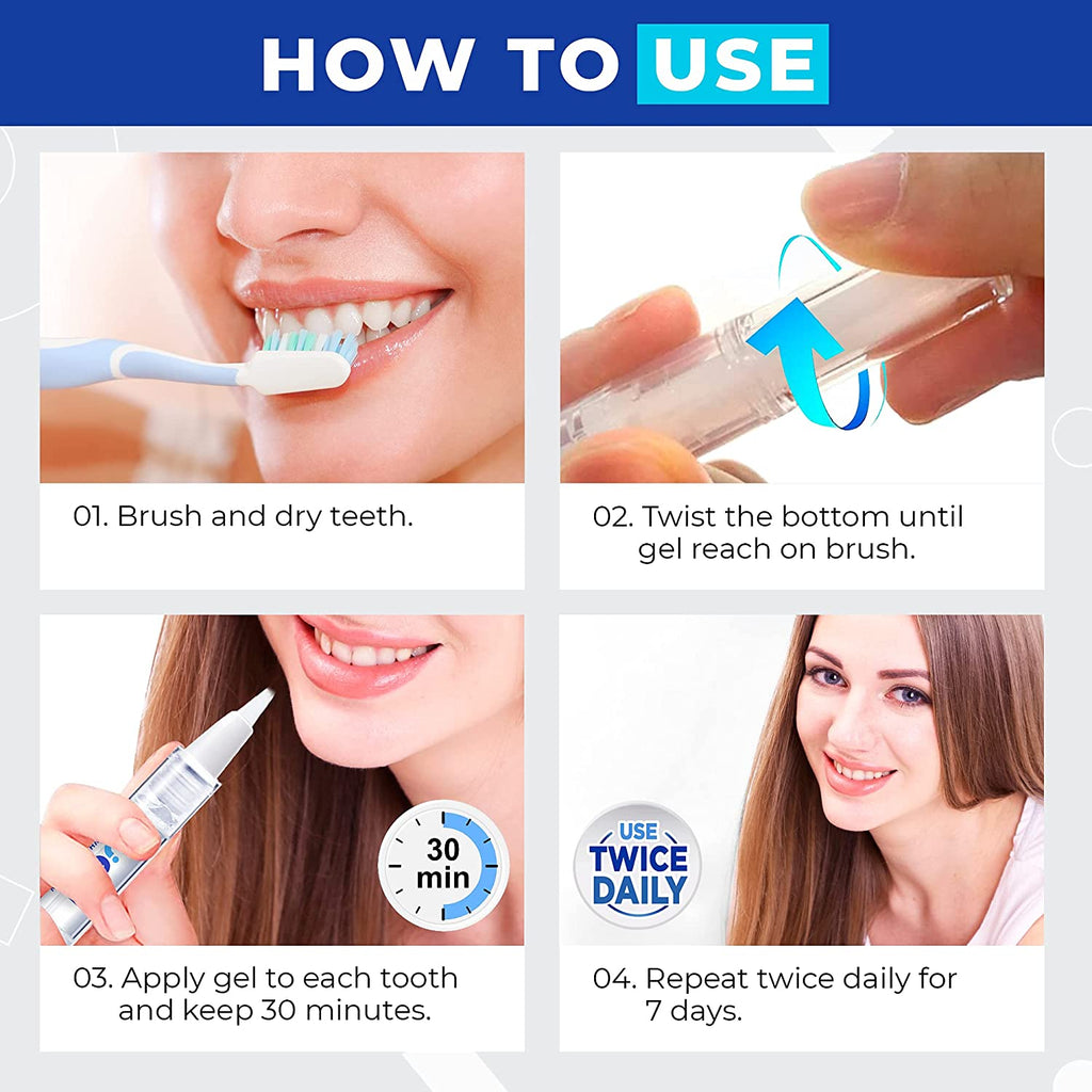 - FOR SENSITIVE TEETH - Our whitening gel is engineered for people with sensitive teeth, use our tooth whitening pens without worrying about pain or discomfort. Better still, our whitening teeth products contain 35 percent carbamide peroxide whitening gel to help you achieve up to eight shades brighter.